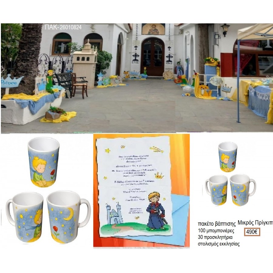 ΜΙΚΡΟΣ ΠΡΙΓΚΙΠΑΣ πακέτο βάπτισης 100 μπομπονιέρες 30 προσκλητήρια στολισμός εκκλησίας ΠΑΚ-26010824 490.00€!!!