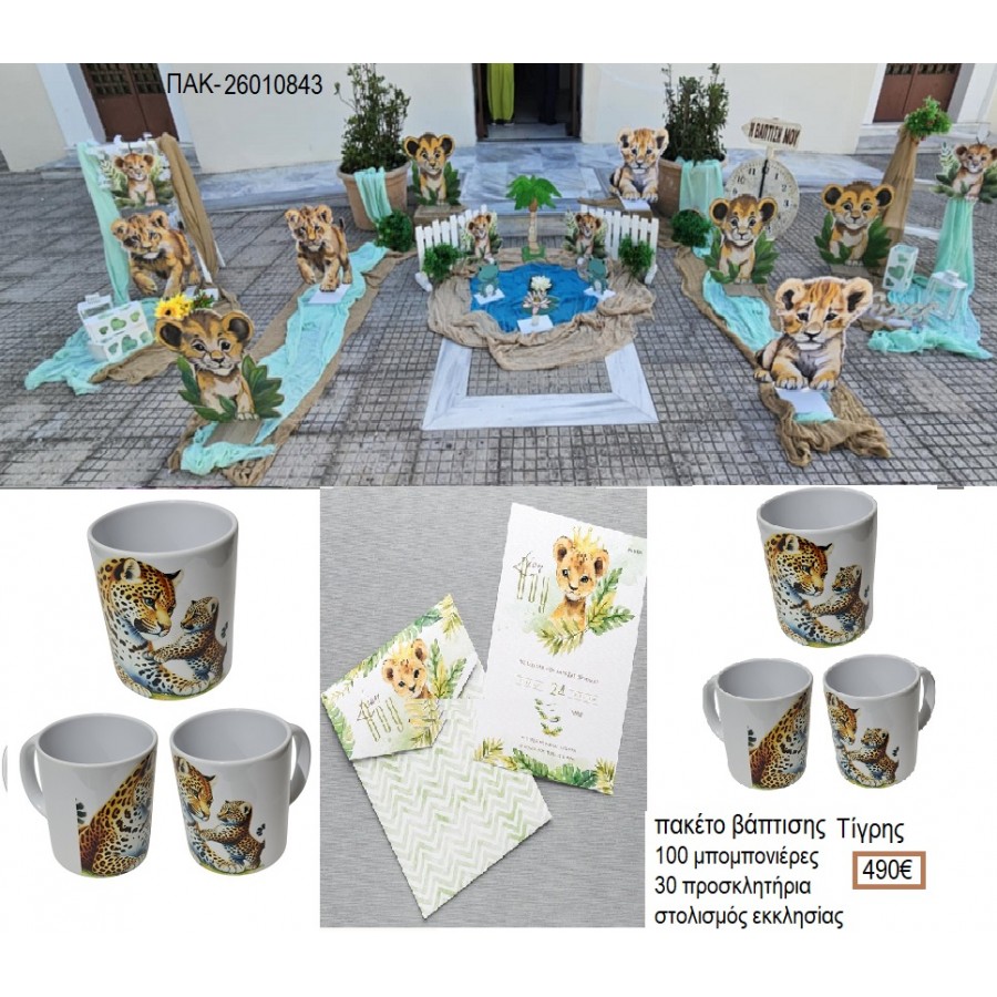 ΤΙΓΡΗΣ πακέτο βάπτισης 100 μπομπονιέρες 30 προσκλητήρια στολισμός εκκλησίας ΠΑΚ-26010843 490.00€!!!