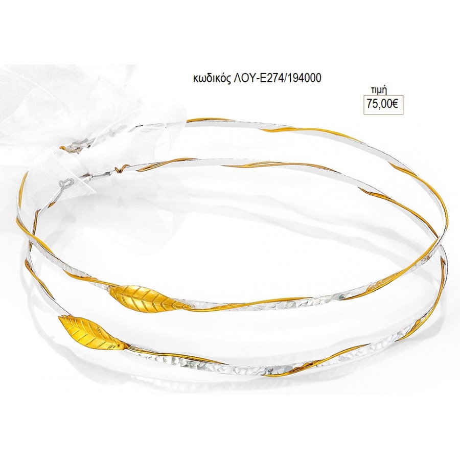 ΣΤΕΦΑΝΑ ΓΑΜΟΥ ΕΠΑΡΓΥΡΑ ΜΕ ΦΥΛΛΑ ΧΡΥΣΟ ΚΑΙ ΑΣΗΜΙ ΒΕΡΓΑ ΛΟΥ-Ε274/194000 75.00€!!!