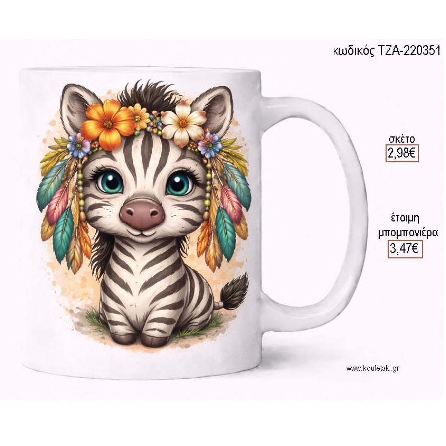 ΖΕΒΡΑ BOHO ΦΤΕΡΑ ΚΑΙ ΛΟΥΛΟΥΔΙΑ ΚΟΥΠΑ για μπομπονιέρες γούρι δώρο ΤΖΑ-220351 2.98€!!!