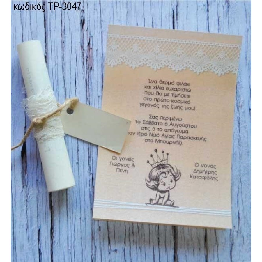 ΠΡΟΣΚΛΗΤΗΡΙΟ ΒΑΠΤΙΣΗΣ ΔΑΝΤΕΛΑ ΧΑΡΤΙ ΠΕΡΓΑΜΗΝΗ ΤΡ-3047