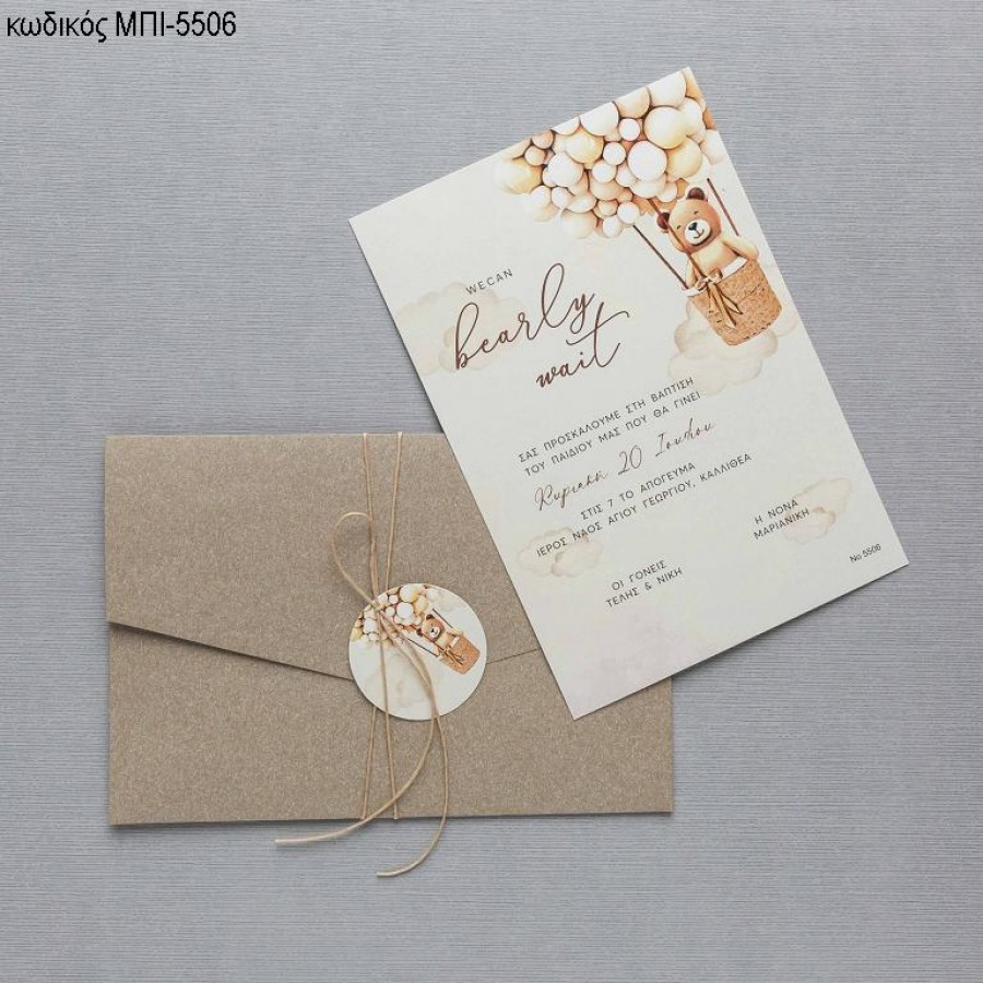 ΠΡΟΣΚΛΗΤΗΡΙΟ ΒΑΠΤΙΣΗΣ ΑΡΚΟΥΔΑΚΙ ΣΕ ΑΕΡΟΣΤΑΤΟ ΣΕ ΦΑΚΕΛΟ ΜΠΕΖ ΜΠΙ-5506