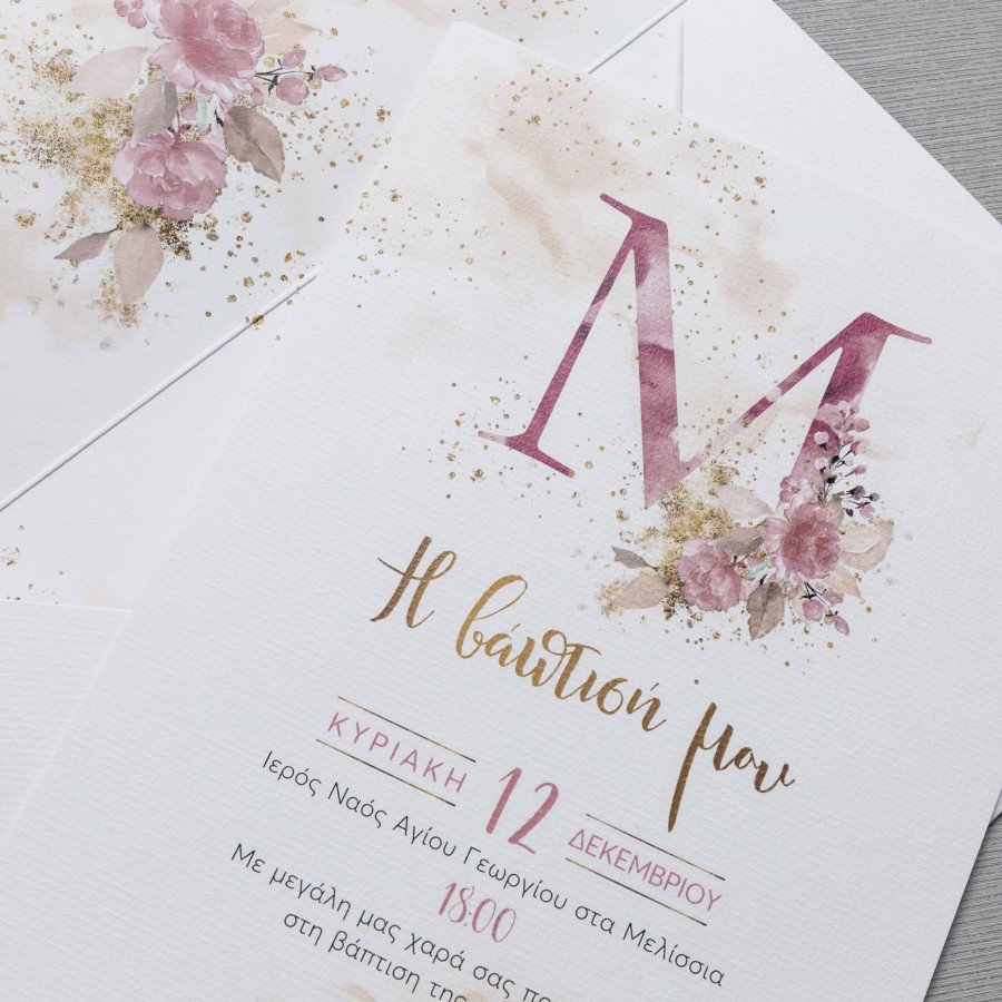 ΠΡΟΣΚΛΗΤΗΡΙΟ ΒΑΠΤΙΣΗΣ ΜΕ ΜΟΝΟΓΡΑΜΜΑ ΛΟΥΛΟΥΔΙΑ ΣΕ ΦΑΚΕΛΟ ΛΕΥΚΟ ΜΠΙ-5517