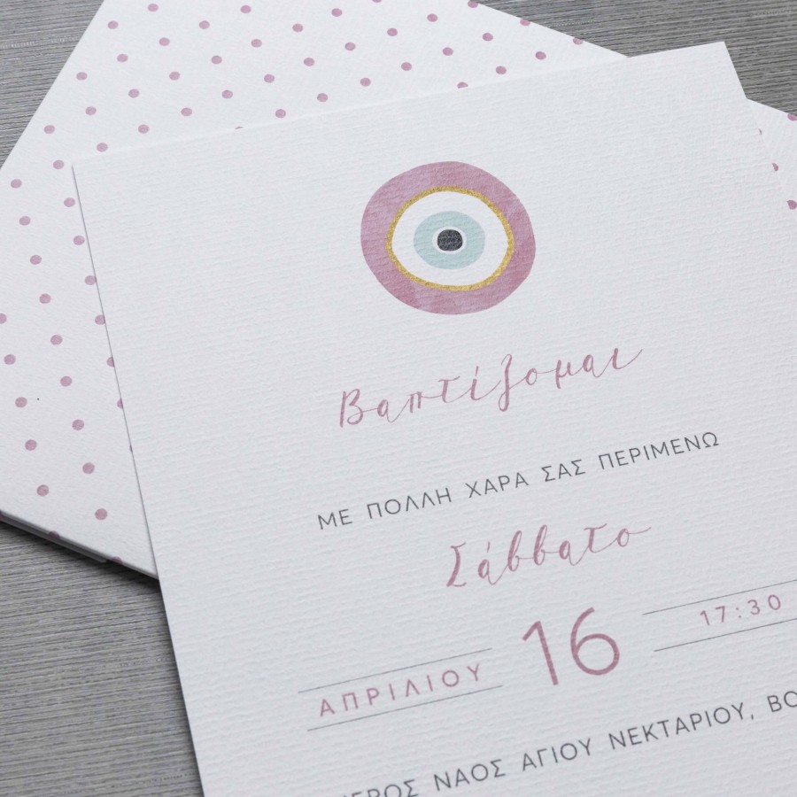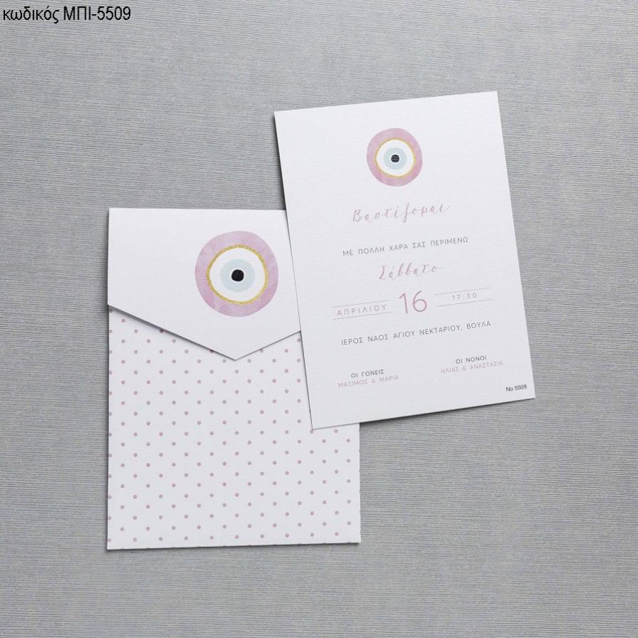 ΠΡΟΣΚΛΗΤΗΡΙΟ ΒΑΠΤΙΣΗΣ ΜΕ ΜΑΤΙ ΡΟΖ ΣΕ ΦΑΚΕΛΟ ΛΕΥΚΟ ΠΟΥΑ ΜΠΙ-5509