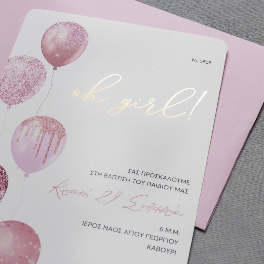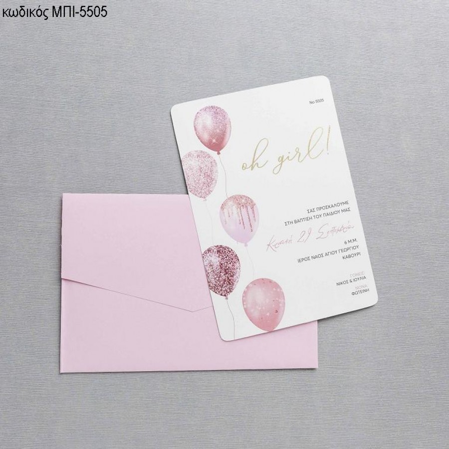 ΠΡΟΣΚΛΗΤΗΡΙΟ ΒΑΠΤΙΣΗΣ ΜΕ ΜΠΑΛΟΝΙΑ ΡΟΖ ΣΕ ΦΑΚΕΛΟ ΡΟΖ ΜΠΙ-5505