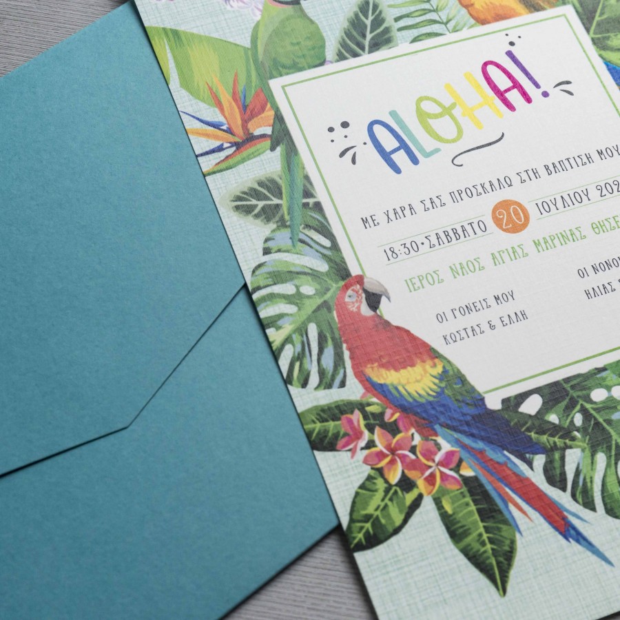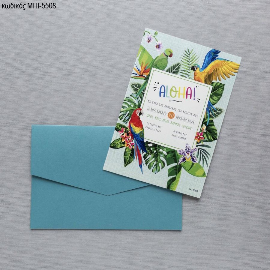 ΠΡΟΣΚΛΗΤΗΡΙΟ ΒΑΠΤΙΣΗΣ ALOHA ΜΕ ΠΑΠΑΓΑΛΟΥΣ ΣΕ ΦΑΚΕΛΟ ΤΥΡΚΟΥΑΖ ΜΠΙ-5508