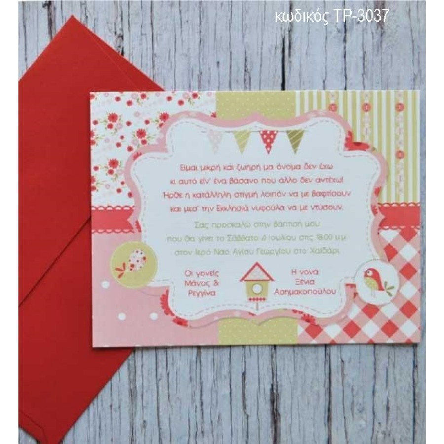 ΠΡΟΣΚΛΗΤΗΡΙΟ ΒΑΠΤΙΣΗΣ ΠΟΥΛΑΚΙΑ ΣΕ ΦΑΚΕΛΟ ΜΑΤ ΚΟΚΚΙΝΟ ΓΡΑΜΜΩΤΟ ΧΑΡΤΙ ΤΡ-3037