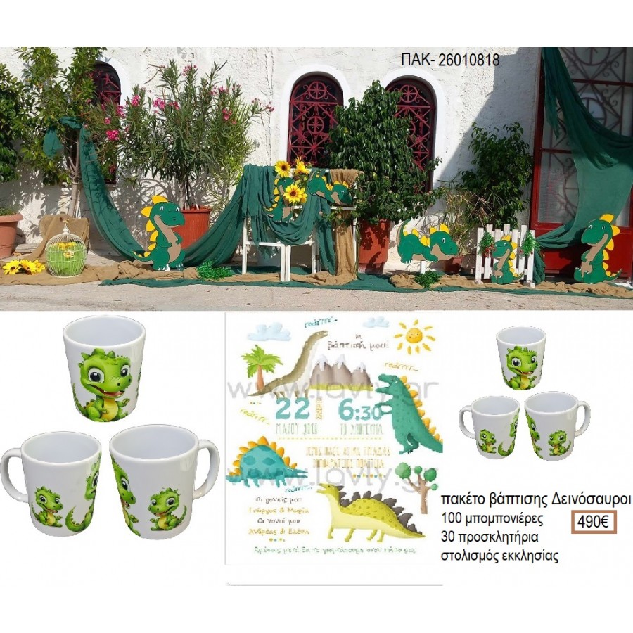 ΔΕΙΝΟΣΑΥΡΟΙ πακέτο βάπτισης 100 μπομπονιέρες 30 προσκλητήρια στολισμός εκκλησίας ΠΑΚ-26010818 490.00€!!!