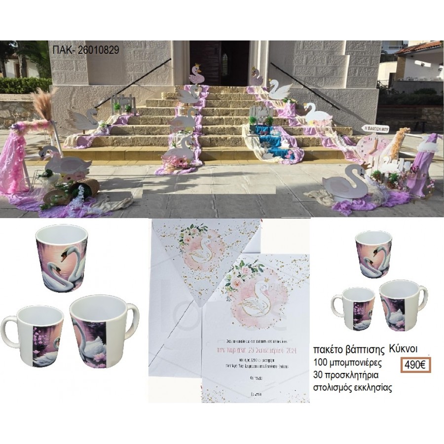 ΚΥΚΝΟΙ πακέτο βάπτισης 100 μπομπονιέρες 30 προσκλητήρια στολισμός εκκλησίας ΠΑΚ-26010829 490.00€!!!