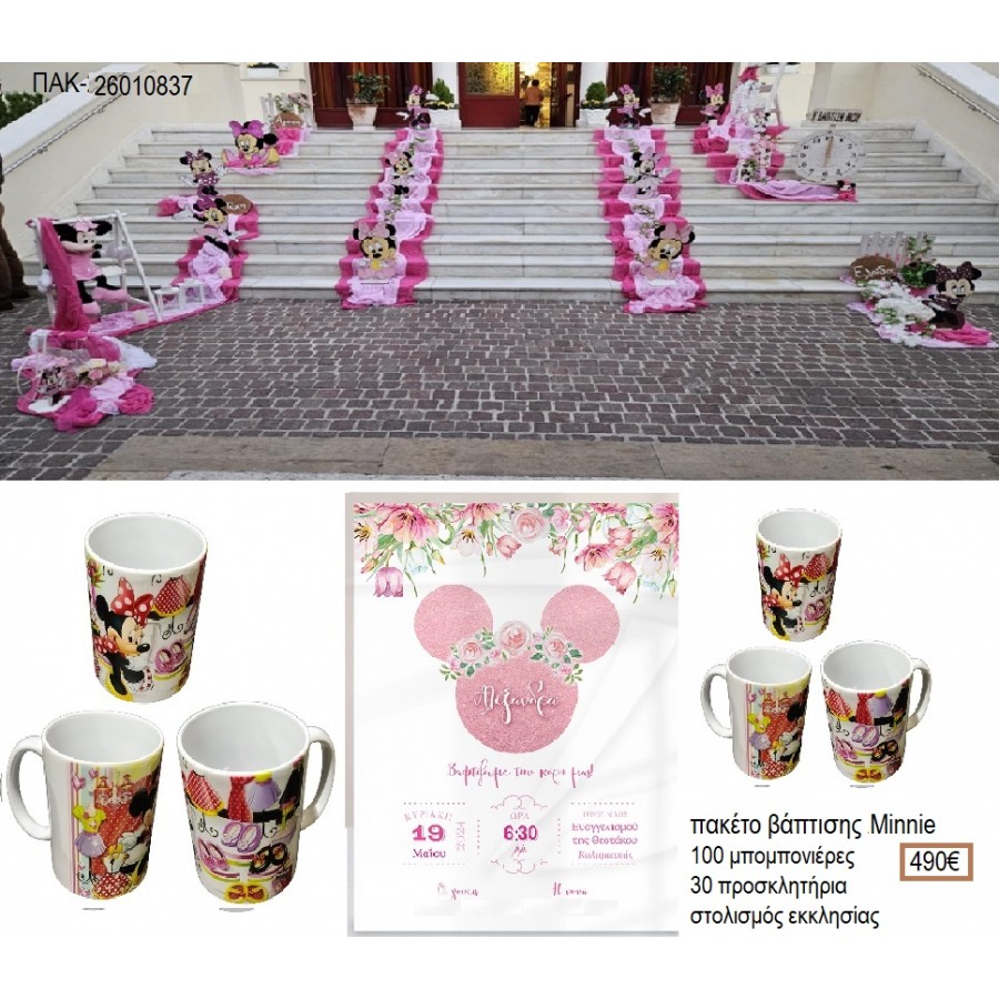 MINNIE πακέτο βάπτισης 100 μπομπονιέρες 30 προσκλητήρια στολισμός εκκλησίας ΠΑΚ-26010837 490.00€!!!