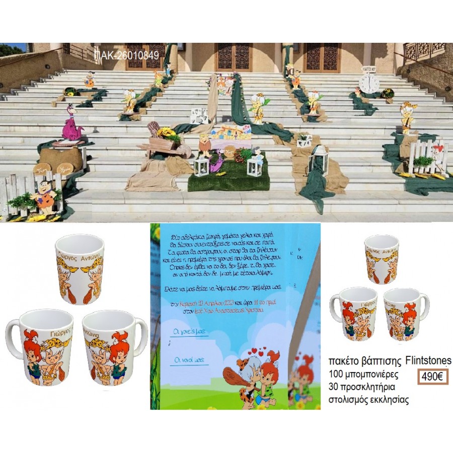 FLINTSTONES πακέτο βάπτισης 100 μπομπονιέρες 30 προσκλητήρια στολισμός εκκλησίας ΠΑΚ-26010849 490.00€!!!