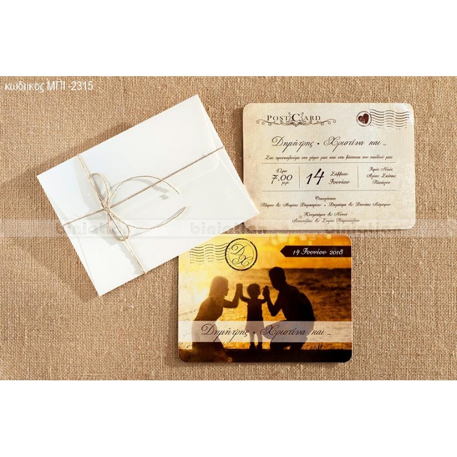 ΠΡΟΣΚΛΗΤΗΡΙΟ ΓΑΜΟΥ ΒΑΠΤΙΣΗΣ ΦΩΤΟΓΡΑΦΙΑ ΣΤΥΛ ΚΑΡΤΠΟΣΤΑΛ ΣΕ ΛΕΥΚΟ ΦΑΚΕΛΟ ΜΠΙ-2315