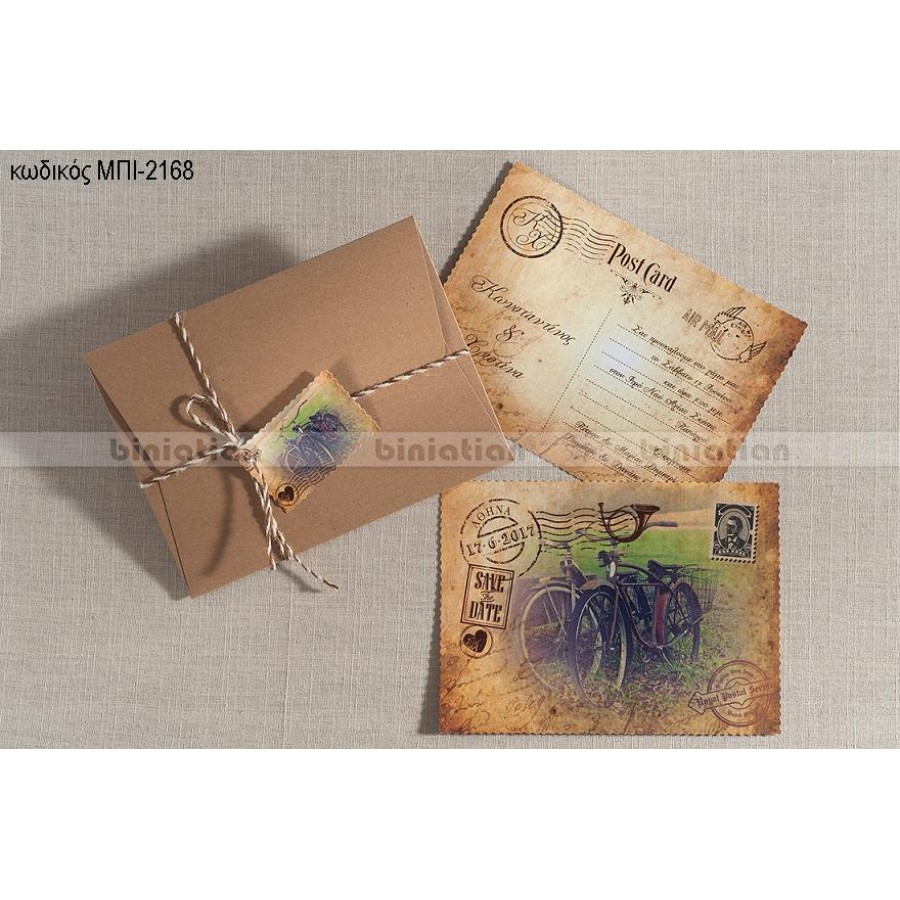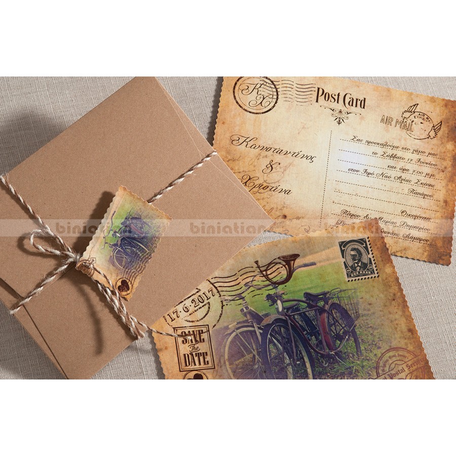 ΠΡΟΣΚΛΗΤΗΡΙΟ ΓΑΜΟΥ VINTAGE ΜΕ ΠΟΔΗΛΑΤΑ ΣΕ ΦΑΚΕΛΟ ΚΑΦΕ ΜΠΙ-2168