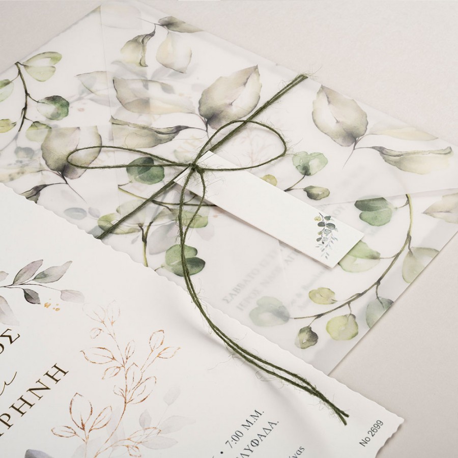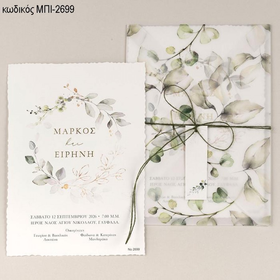 ΠΡΟΣΚΛΗΤΗΡΙΟ ΓΑΜΟΥ ΜΕ ΦΥΛΛΑ ΣΕ ΦΑΚΕΛΟ ΡΙΖΟΧΑΡΤΟ ΜΕ ΦΥΛΛΑ ΜΠΙ-2699