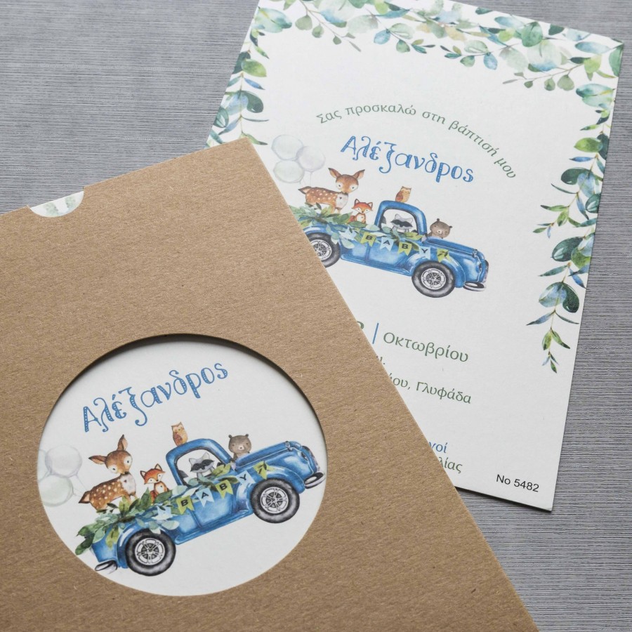 ΠΡΟΣΚΛΗΤΗΡΙΟ ΒΑΠΤΙΣΗΣ ΜΕ ΖΩΑ ΔΑΣΟΥΣ ΣΕ ΦΑΚΕΛΟ ΚΡΑΦΤ ΜΠΙ-5482
