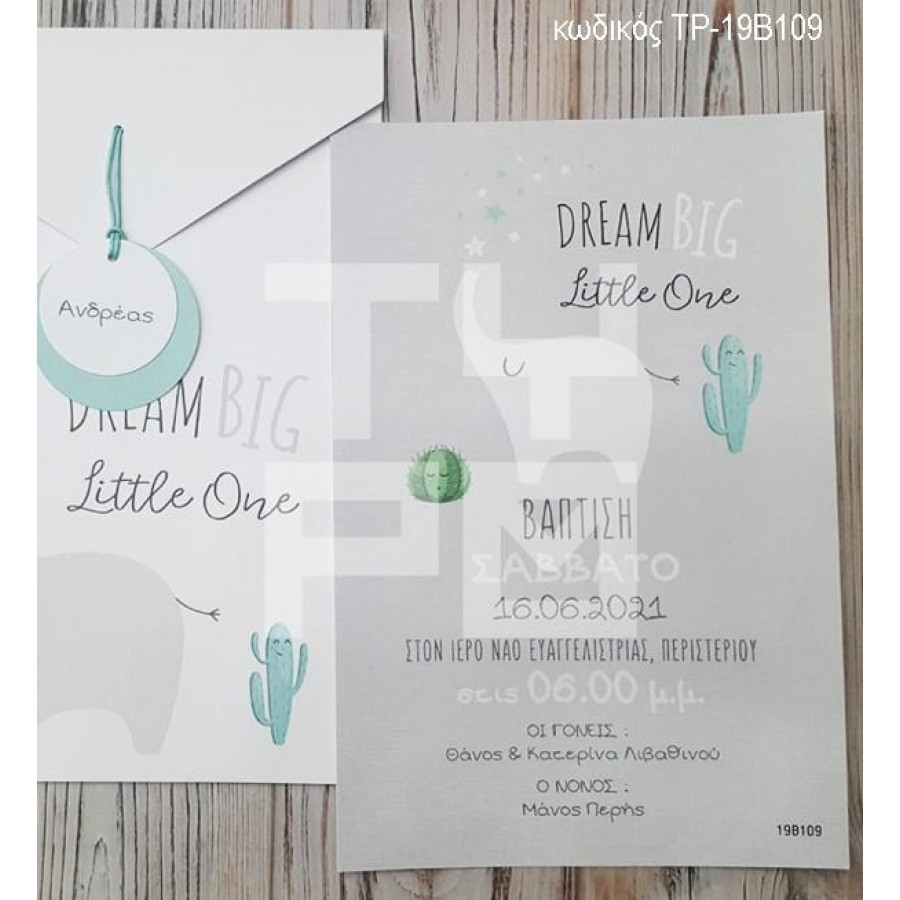 ΠΡΟΣΚΛΗΤΗΡΙΟ ΒΑΠΤΙΣΗΣ ΓΚΡΙ ΕΛΕΦΑΝΤΑΚΙ ΣΕ ΦΑΚΕΛΟ ΤΥΠΩΜΕΝΟ ΙΔΙΟ ΣΧΕΔΙΟ ΤΡ-19Β109