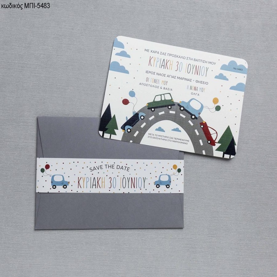 ΠΡΟΣΚΛΗΤΗΡΙΟ ΒΑΠΤΙΣΗΣ ΜΕ ΑΥΤΟΚΙΝΗΤΑ ΣΕ ΦΑΚΕΛΟ ΓΚΡΙ ΜΠΙ-5483