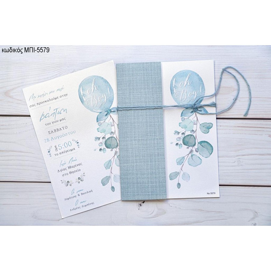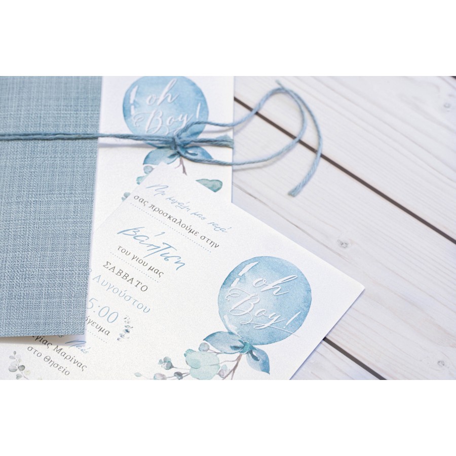 ΠΡΟΣΚΛΗΤΗΡΙΟ ΒΑΠΤΙΣΗΣ ΜΠΑΛΟΝΙ ΓΑΛΑΖΙΟ ΜΕ ΛΟΥΛΟΥΔΙΑ ΜΠΙ-5579