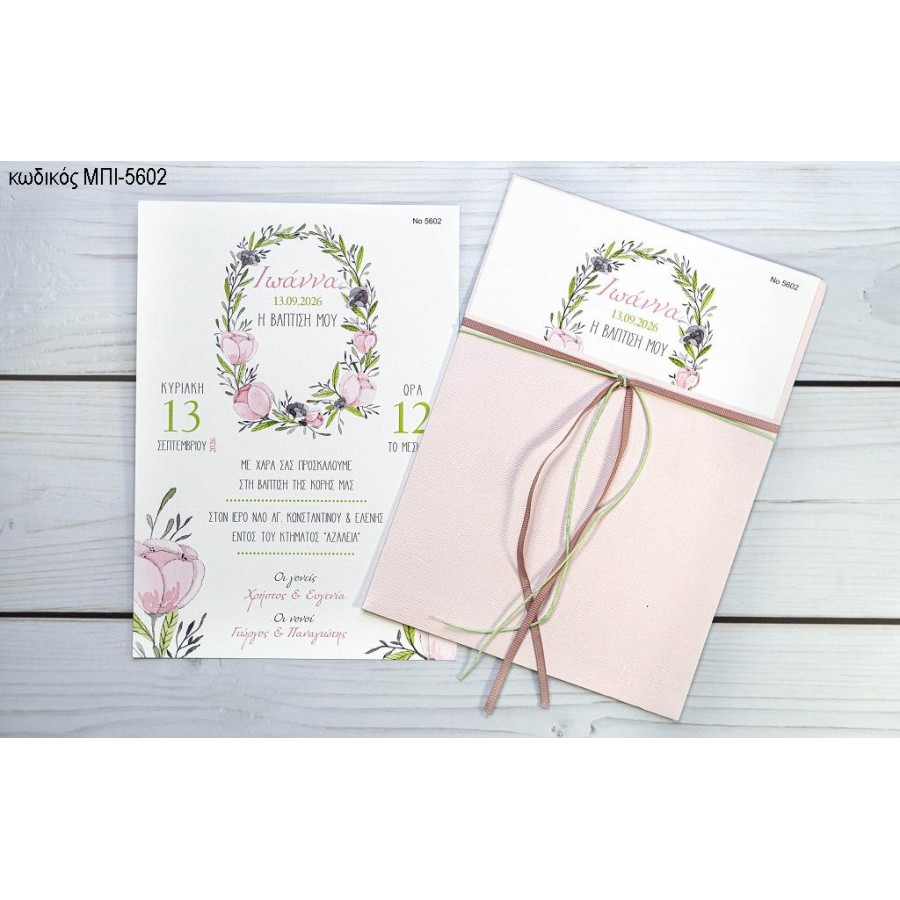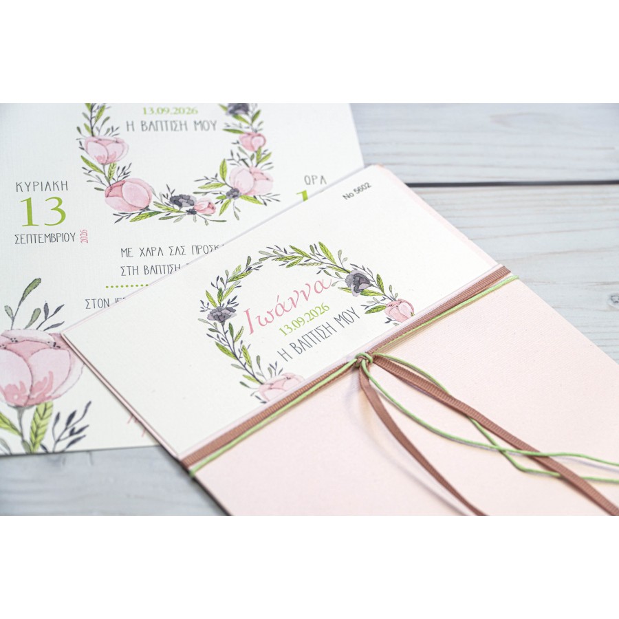 ΠΡΟΣΚΛΗΤΗΡΙΟ ΒΑΠΤΙΣΗΣ ΜΕ ΛΟΥΛΟΥΔΙΑ ΡΟΖ ΣΕ ΑΝΟΙΚΤΟ ΦΑΚΕΛΟ ΡΟΖ ΜΠΙ-5602