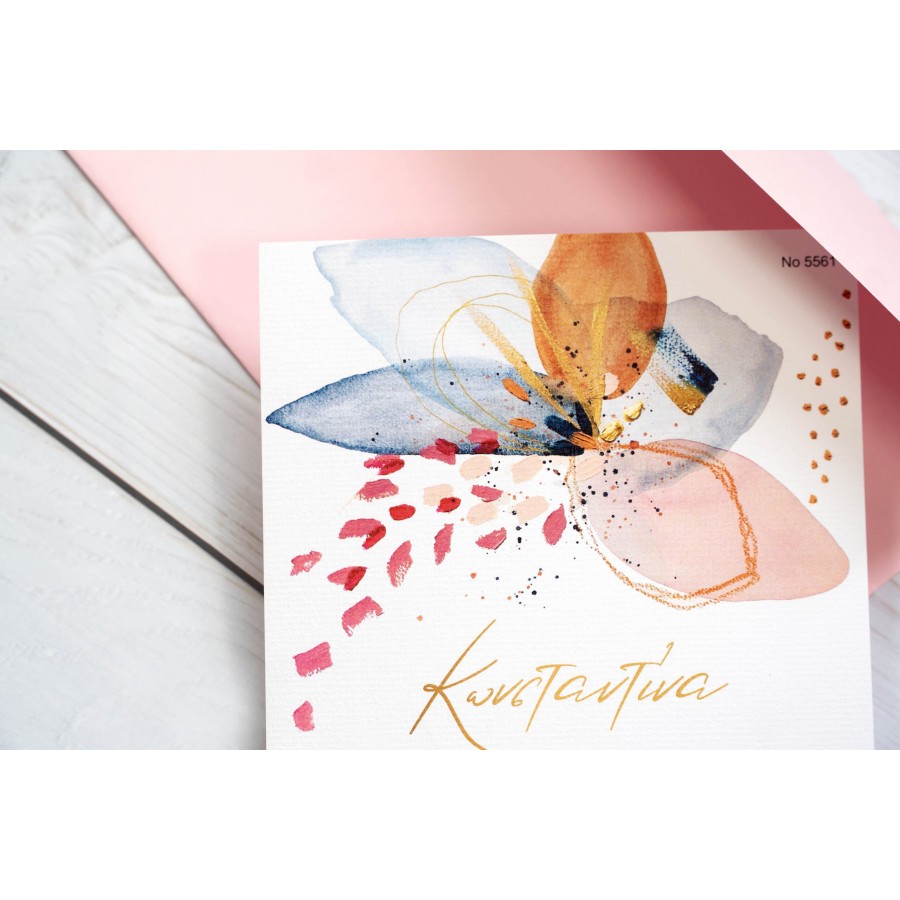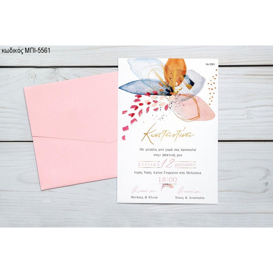 ΠΡΟΣΚΛΗΤΗΡΙΟ ΒΑΠΤΙΣΗΣ ΜΕ ΛΟΥΛΟΥΔΙ ΠΟΛΥΧΡΩΜΟ ΣΕ ΦΑΚΕΛΟ ΡΟΖ ΜΠΙ-5561