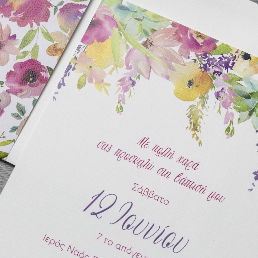 ΠΡΟΣΚΛΗΤΗΡΙΟ ΒΑΠΤΙΣΗΣ ΜΕ ΠΟΛΥΧΡΩΜΑ ΛΟΥΛΟΥΔΙΑ ΣΕ ΦΑΚΕΛΟ ΛΕΥΚΟ ΜΠΙ-5526