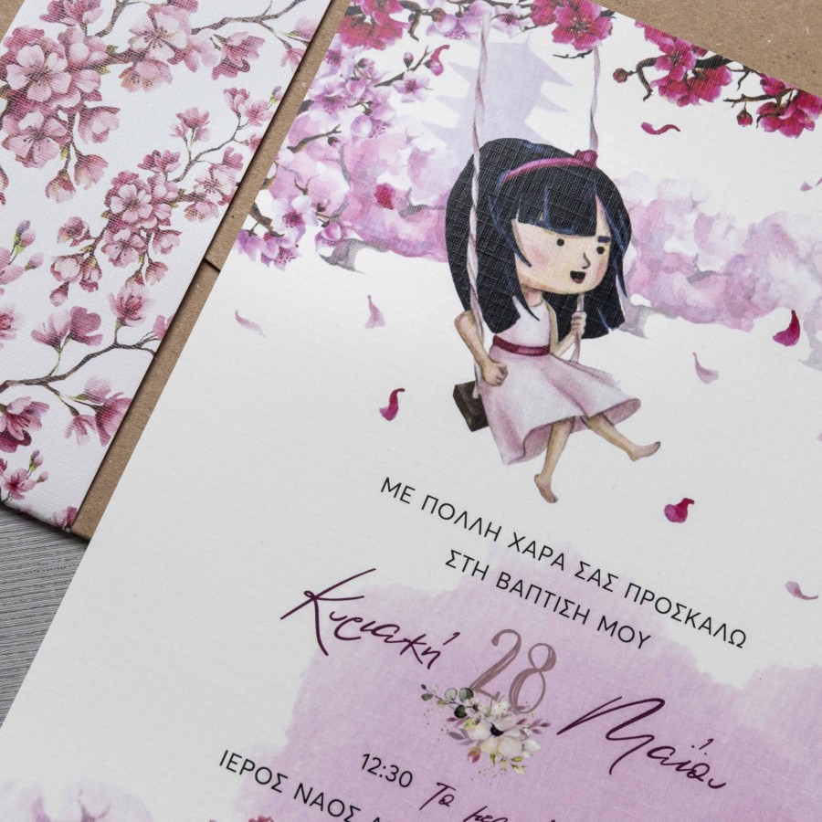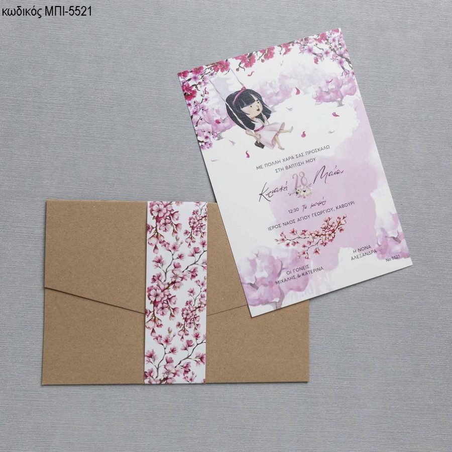 ΠΡΟΣΚΛΗΤΗΡΙΟ ΒΑΠΤΙΣΗΣ ΚΟΡΙΤΣΑΚΙ ΜΕ ΛΟΥΛΟΥΔΙΑ ΣΕ ΦΑΚΕΛΟ ΡΟΖ ΚΡΑΦΤ ΜΠΙ-5521