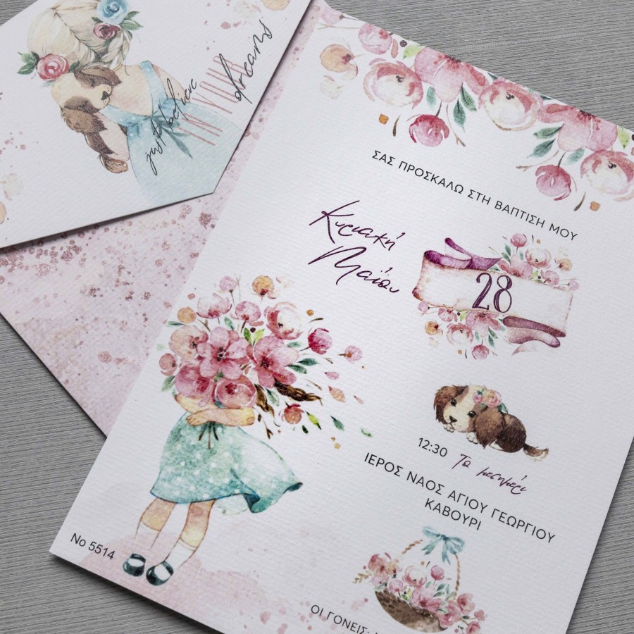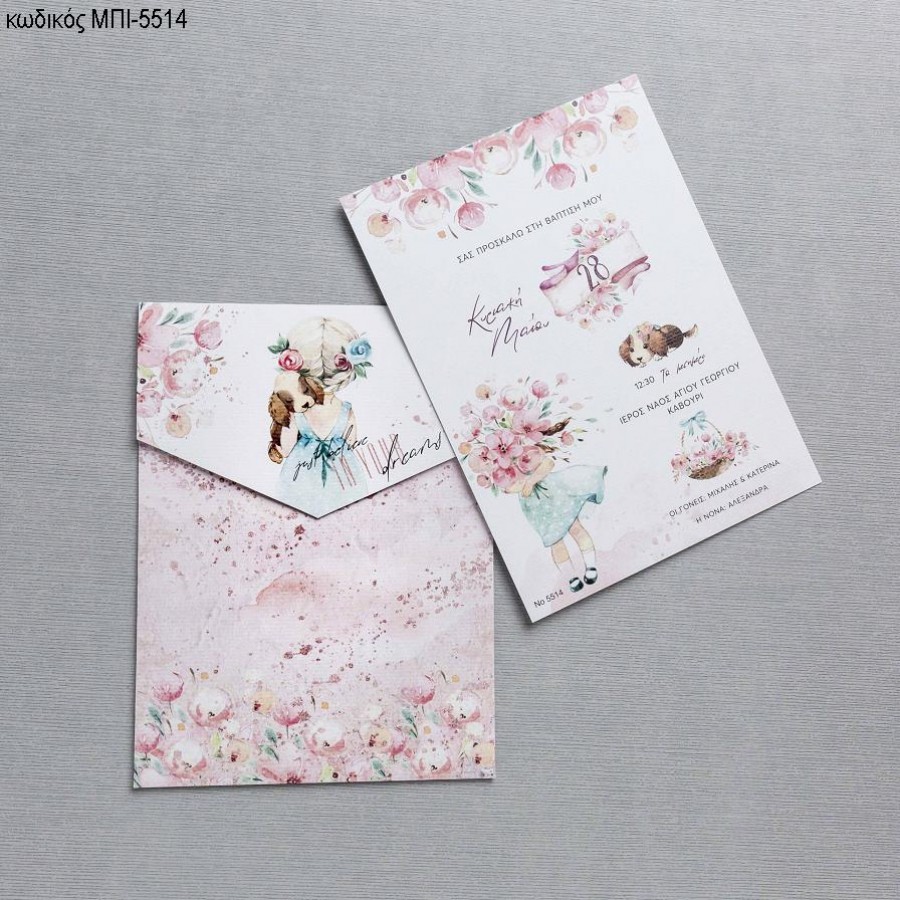 ΠΡΟΣΚΛΗΤΗΡΙΟ ΒΑΠΤΙΣΗΣ ΜΕ ΚΟΡΙΤΣΑΚΙ ΛΟΥΛΟΥΔΙΑ ΣΕ ΦΑΚΕΛΟ ΜΕ ΙΔΙΟ ΣΧΕΔΙΟ ΜΠΙ-5514
