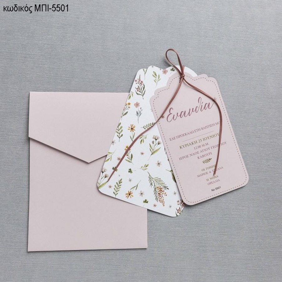 ΠΡΟΣΚΛΗΤΗΡΙΟ ΒΑΠΤΙΣΗΣ ΜΕ ΛΟΥΛΟΥΔΙΑ ΔΙΠΛΟ ΣΕ ΦΑΚΕΛΟ ΡΟΖ ΜΠΙ-5501