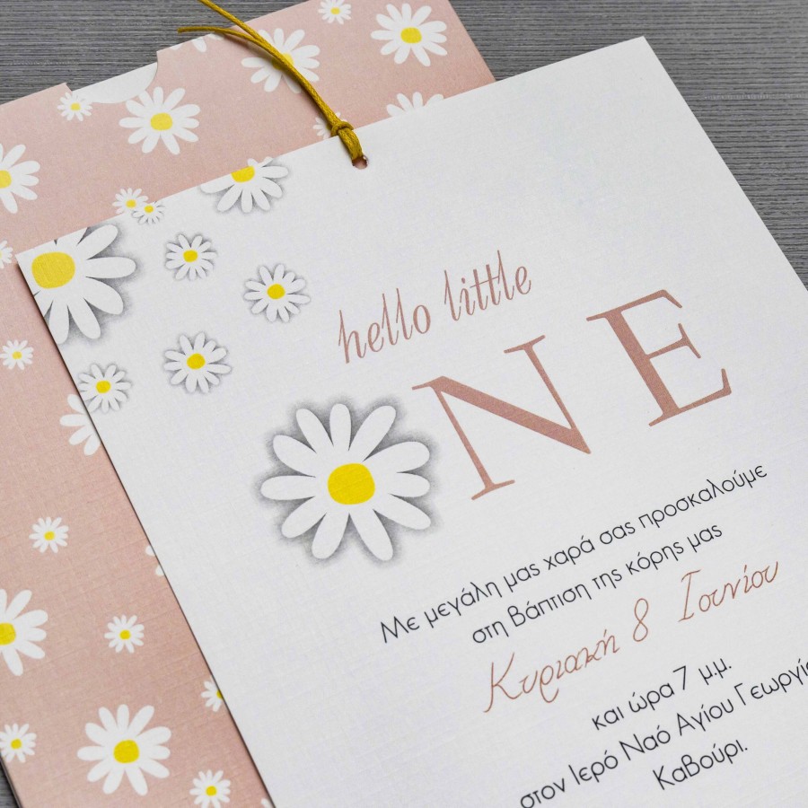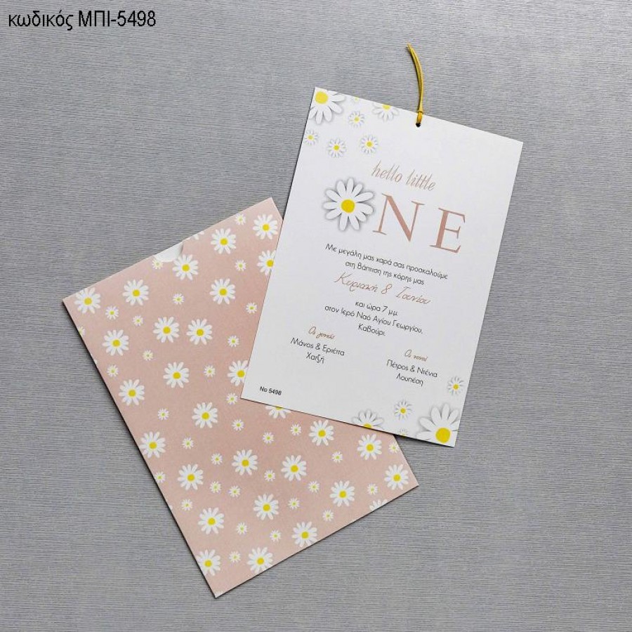 ΠΡΟΣΚΛΗΤΗΡΙΟ ΒΑΠΤΙΣΗΣ ΜΑΡΓΑΡΙΤΑ ΣΕ ΦΑΚΕΛΟ ΡΟΖ ΜΕ ΜΑΡΓΑΡΙΤΕΣ ΜΠΙ-5498