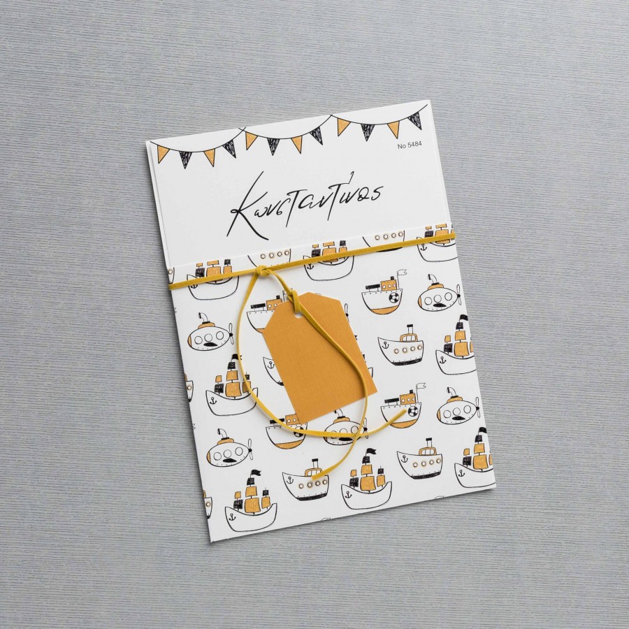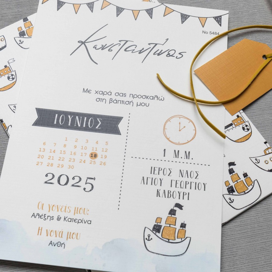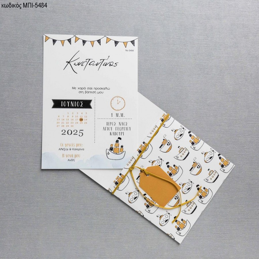 ΠΡΟΣΚΛΗΤΗΡΙΟ ΒΑΠΤΙΣΗΣ ΜΕ ΚΑΡΑΒΙΑ ΧΡΩΜΑ ΜΑΥΡΟ ΚΙΤΡΙΝΟ ΜΠΙ-5484