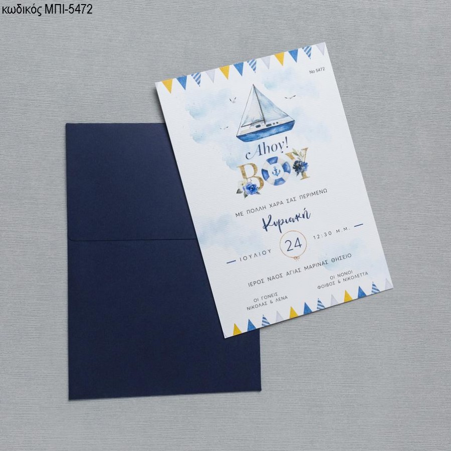 ΠΡΟΣΚΛΗΤΗΡΙΟ ΒΑΠΤΙΣΗΣ ΚΑΡΑΒΙ ΣΕ ΜΠΛΕ ΦΑΚΕΛΟ ΜΠΙ-5472