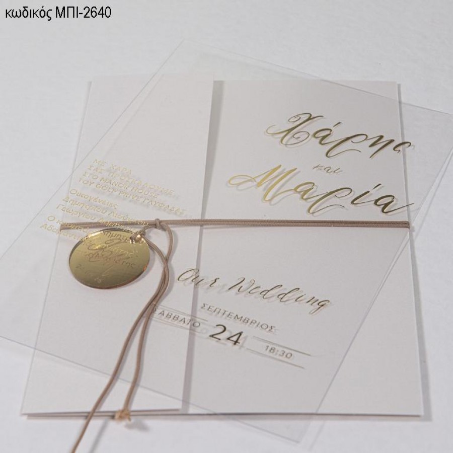ΠΡΟΣΚΛΗΤΗΡΙΟ ΓΑΜΟΥ PVC ΧΡΥΣΑ ΓΡΑΜΜΑΤΑ ΣΕ ΦΑΚΕΛΟ ΜΕΤΑΛΛΙΖΕ ΜΠΙ-2640