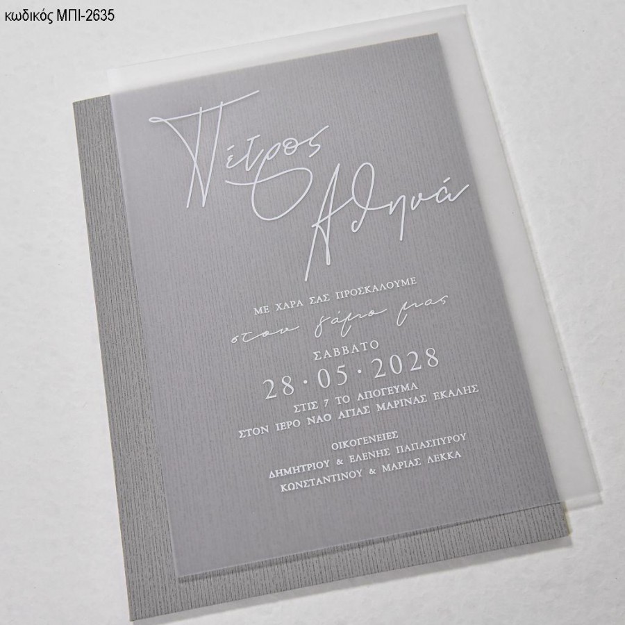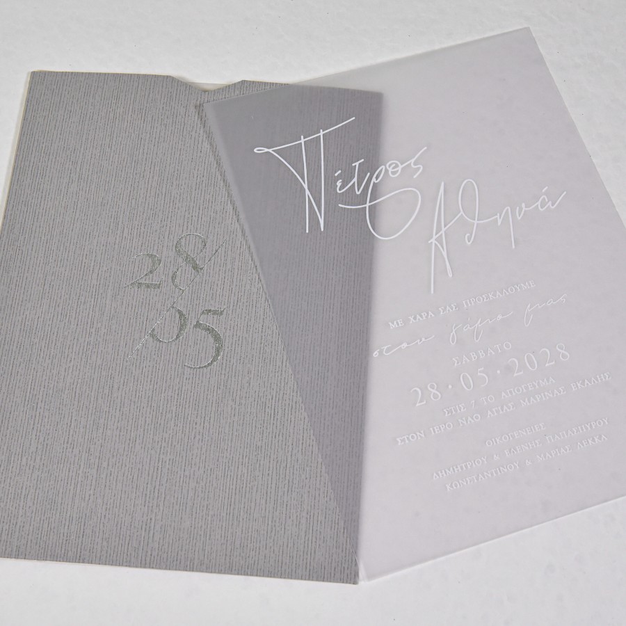 ΠΡΟΣΚΛΗΤΗΡΙΟ ΓΑΜΟΥ PVC ΜΕ ΛΕΥΚΑ ΓΡΑΜΜΑΤΑ ΣΕ ΦΑΚΕΛΟ ΓΚΡΙ ΜΕ ΗΜΕΡΟΜΗΝΙΑ ΜΠΙ-2635