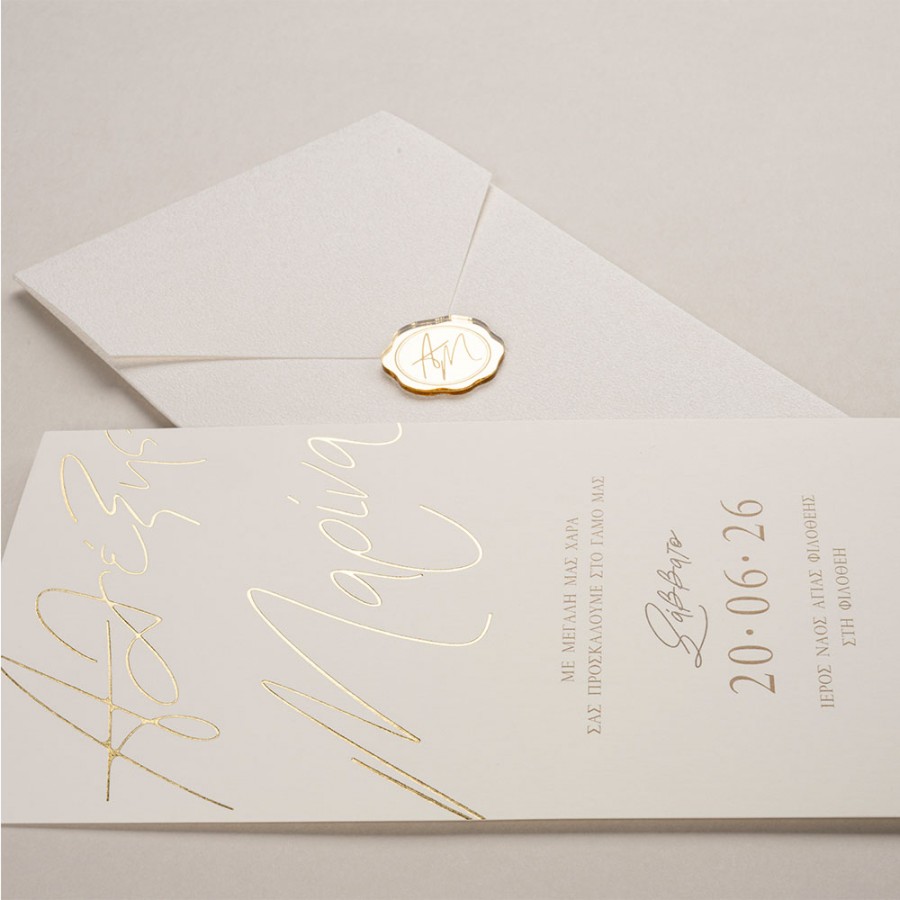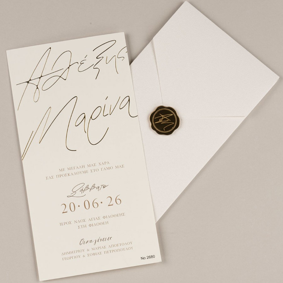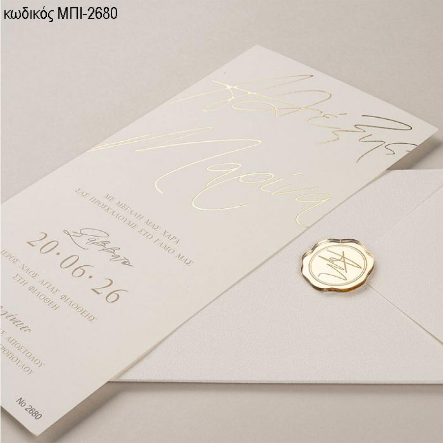 ΠΡΟΣΚΛΗΤΗΡΙΟ ΓΑΜΟΥ ΜΕ ΧΡΥΣΑ ΟΝΟΜΑΤΑ ΣΕ ΦΑΚΕΛΟ ΜΑΚΡΟΣΤΕΝΟ ΜΠΙ-2680