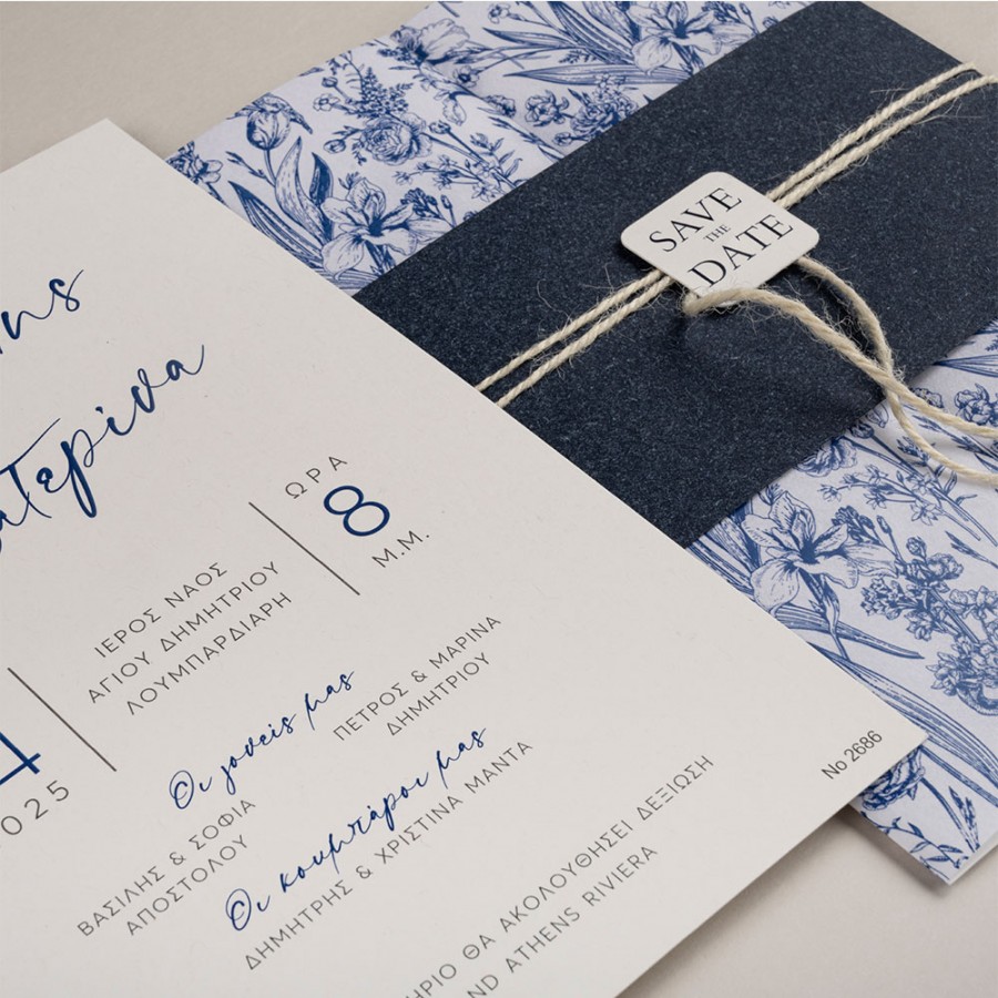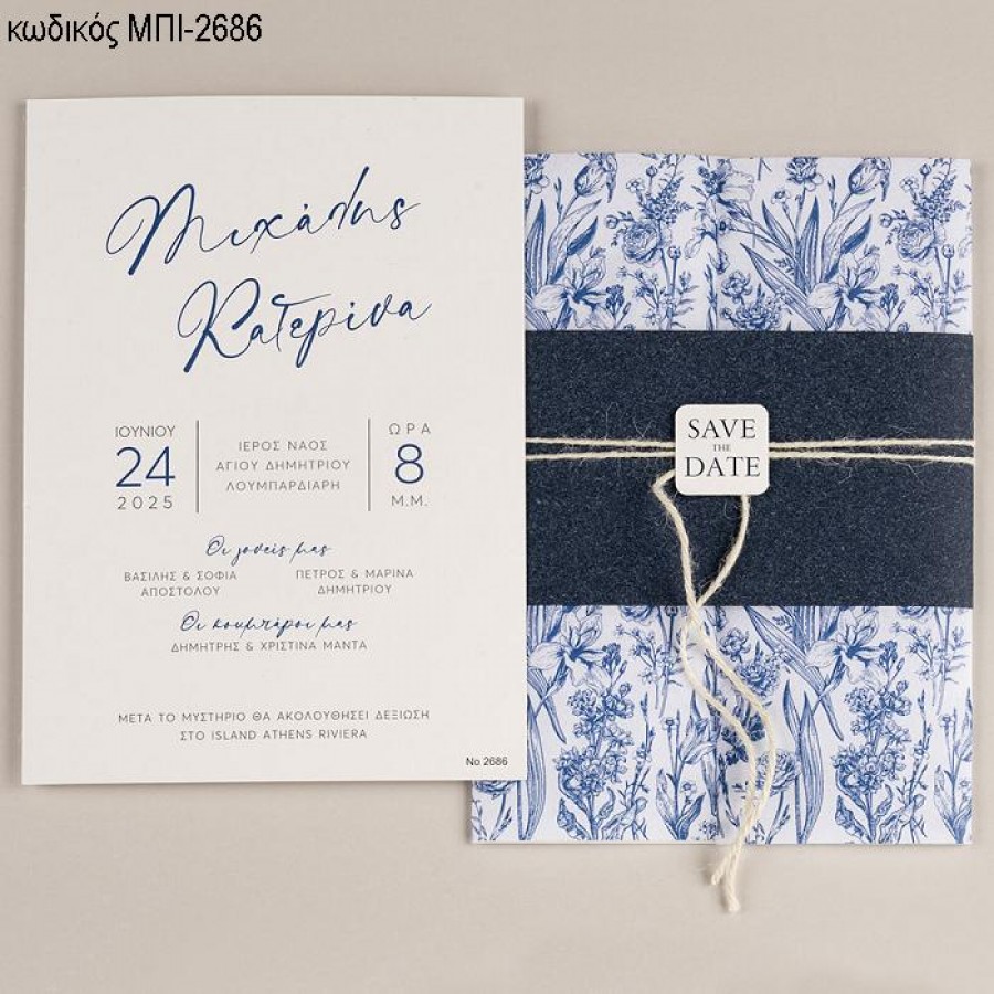 ΠΡΟΣΚΛΗΤΗΡΙΟ ΓΑΜΟΥ ΣΕ ΦΑΚΕΛΟ ΜΕ ΜΠΛΕ ΛΟΥΛΟΥΔΙΑ ΜΠΙ-2686