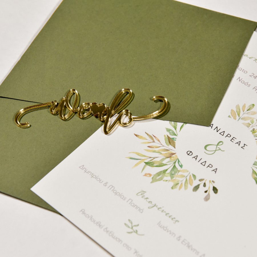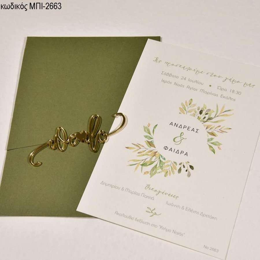 ΠΡΟΣΚΛΗΤΗΡΙΟ ΓΑΜΟΥ ΜΕ ΦΥΛΛΑ ΜΠΕΖ ΠΡΑΣΙΝΑ ΣΕ ΦΑΚΕΛΟ ΛΑΔΙ ΜΠΙ-2663