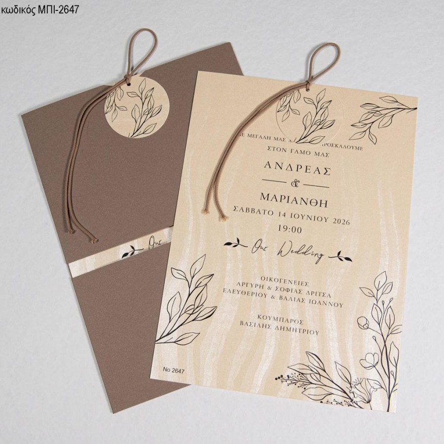 ΠΡΟΣΚΛΗΤΗΡΙΟ ΓΑΜΟΥ ΜΠΕΖ ΜΕ ΚΛΑΔΙΑ ΣΕ ΦΑΚΕΛΟ ΚΑΦΕ ΜΠΙ-2647