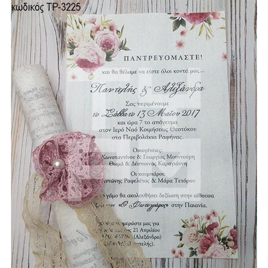 ΠΡΟΣΚΛΗΤΗΡΙΟ ΓΑΜΟΥ ΠΕΡΓΑΜΗΝΗ ΛΕΥΚΗ ΜΕ ΤΡΙΑΝΤΑΦΥΛΛΑ ΤΡ-3225