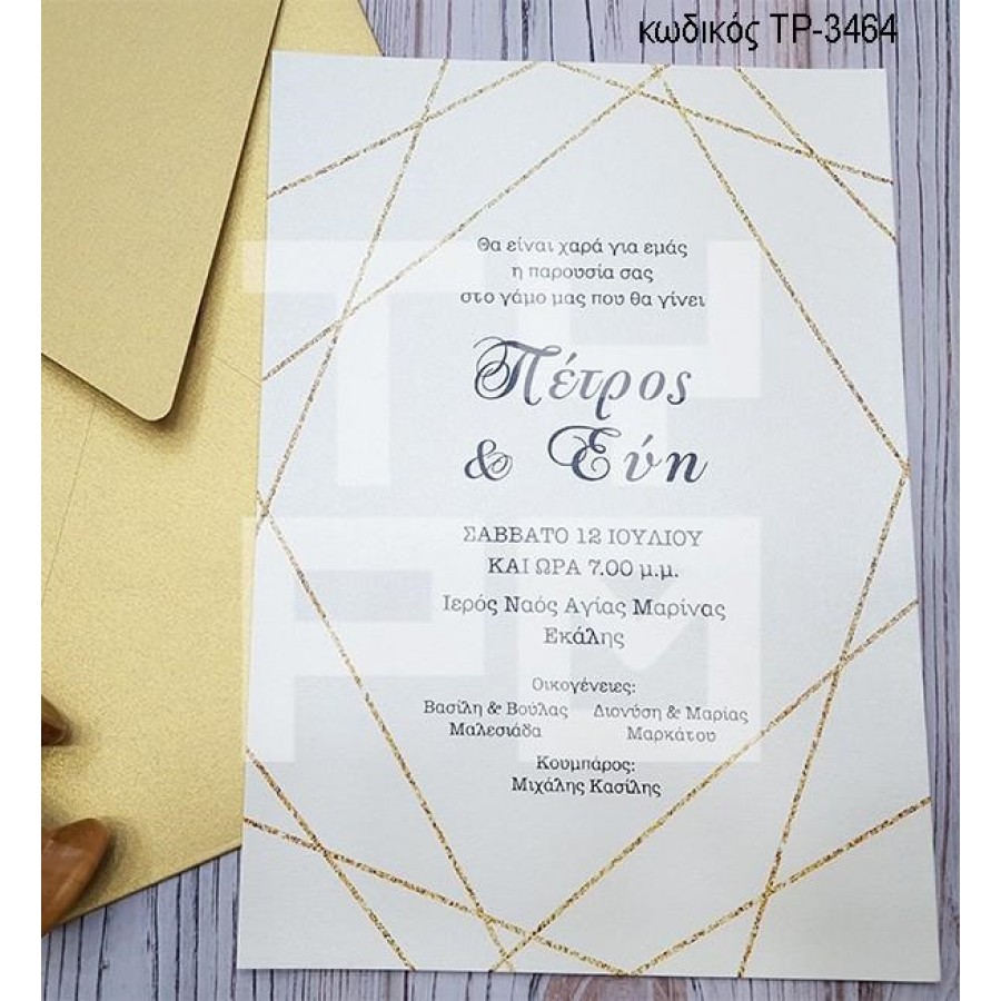 ΠΡΟΣΚΛΗΤΗΡΙΟ ΓΑΜΟΥ GOLD DIAMOND ΣΕ ΦΑΚΕΛΟ ΧΡΥΣΟ ΤΡ-3464