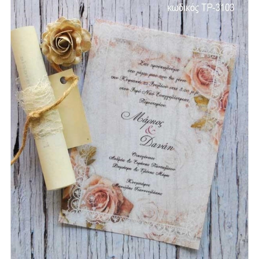 ΠΡΟΣΚΛΗΤΗΡΙΟ ΓΑΜΟΥ ΠΕΡΓΑΜΗΝΗ ΜΕ ΣΧΕΔΙΟ ΛΟΥΛΟΥΔΙΑ ΔΑΝΤΕΛΑ ΤΡ-3103