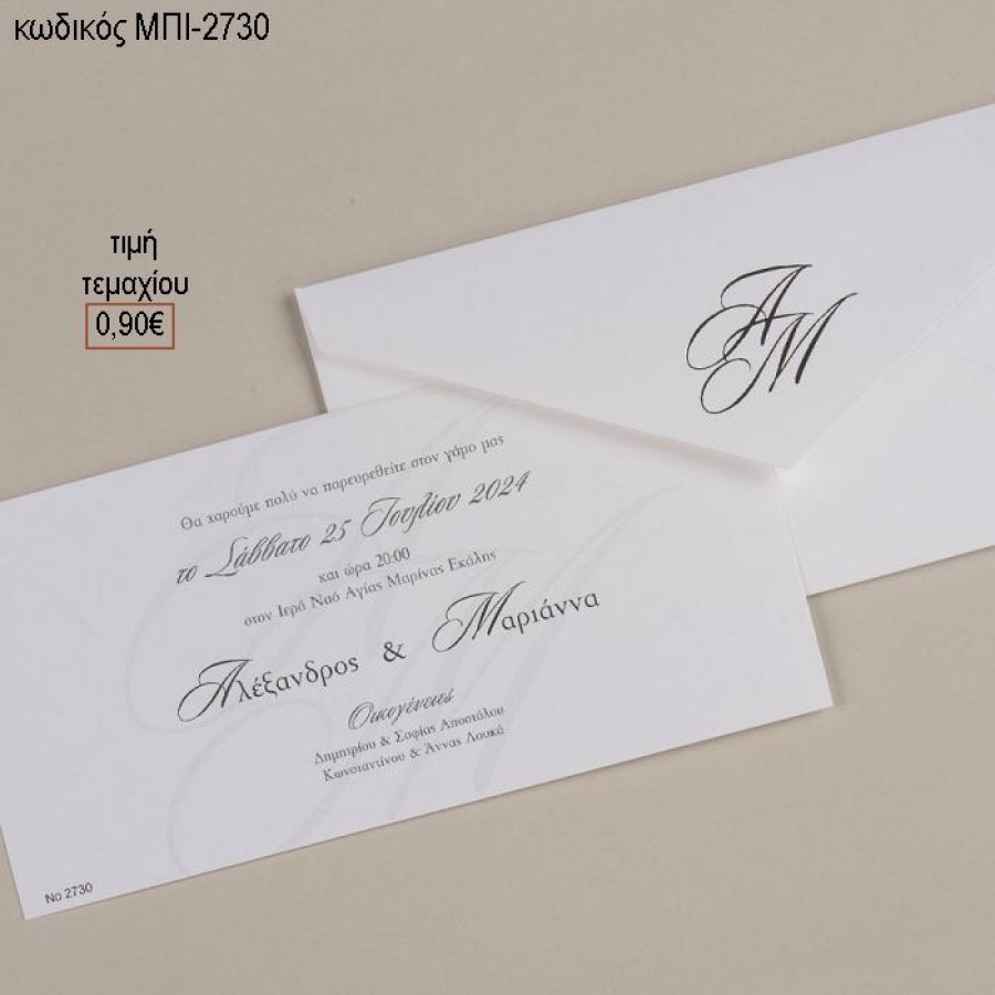 ΠΡΟΣΚΛΗΤΗΡΙΟ ΓΑΜΟΥ ME ΑΡΧΙΚΑ ΣΕ ΦΑΚΕΛΟ ΛΕΥΚΟ ΜΑΤ ΧΑΡΤΙ ΜΠΙ-2730 0.90€!!!