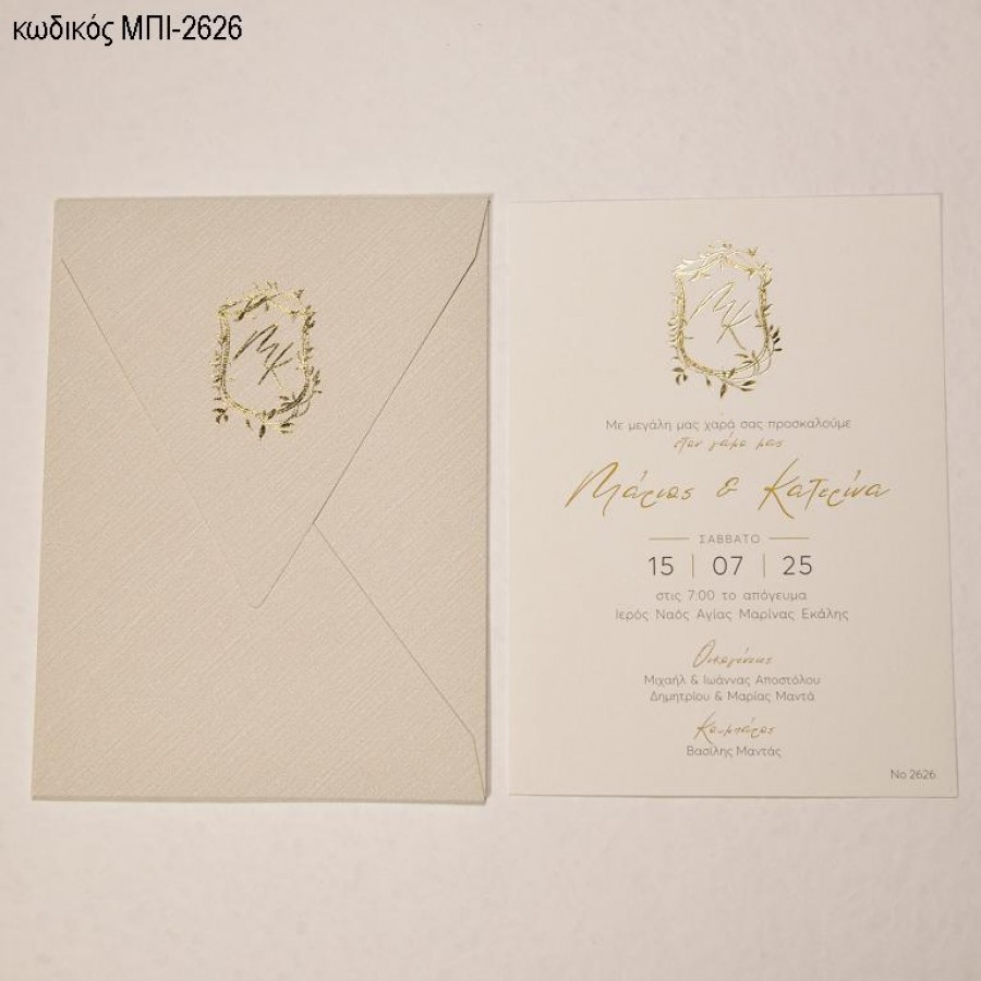 ΠΡΟΣΚΛΗΤΗΡΙΟ ΓΑΜΟΥ ΜΕ ΧΡΥΣΟ ΚΛΑΔΙ ΣΕ ΦΑΚΕΛΟ ΜΕΤΑΛΛΙΖΕ ΚΑΙ ΑΡΧΙΚΑ ΜΠΙ-2626