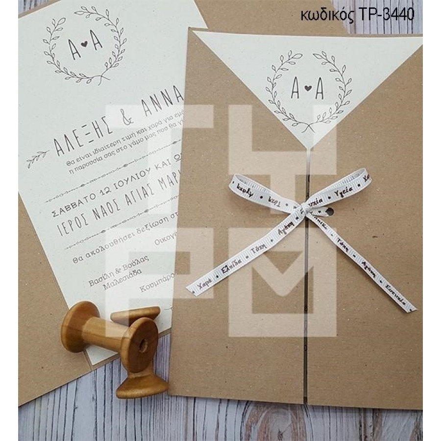 ΠΡΟΣΚΛΗΤΗΡΙΟ ΓΑΜΟΥ ΤΡΙΠΤΥΧΟ ΣΕ ΚΡΕΜ ΒΑΜΒΑΚΕΡΟ ΧΑΡΤΙ ΤΡ-3440