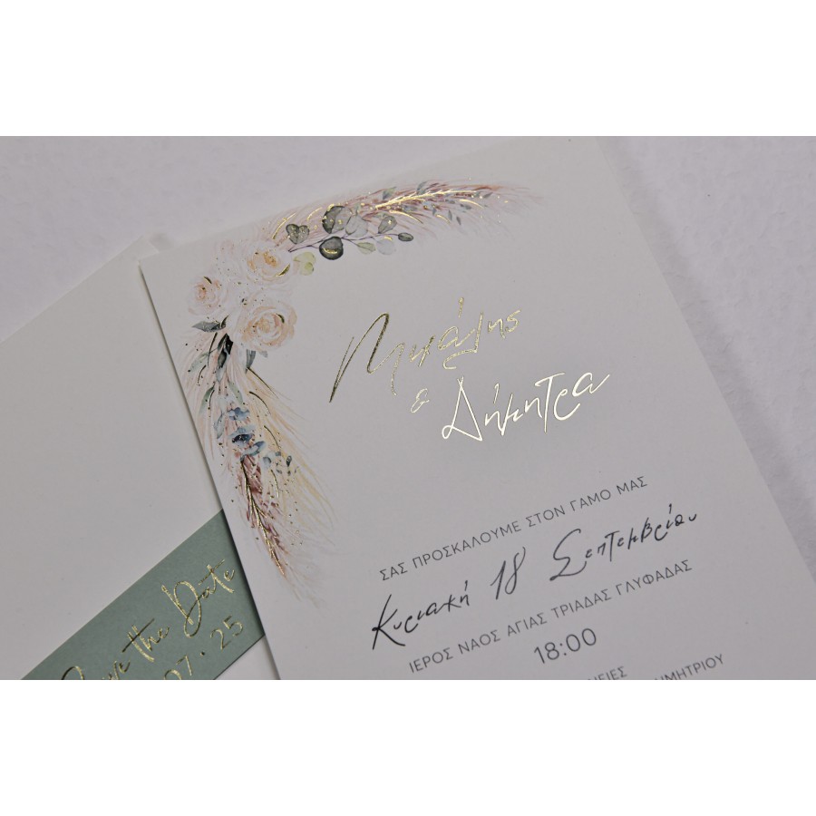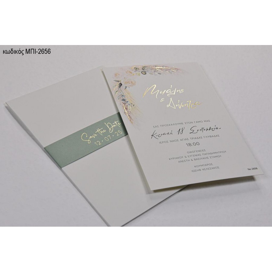 ΠΡΟΣΚΛΗΤΗΡΙΟ ΓΑΜΟΥ ME ΦΥΛΛΑ ΦΤΕΡΑ ΣΕ ΦΑΚΕΛΟ SAVE THE DATE ΜΠΙ-2656