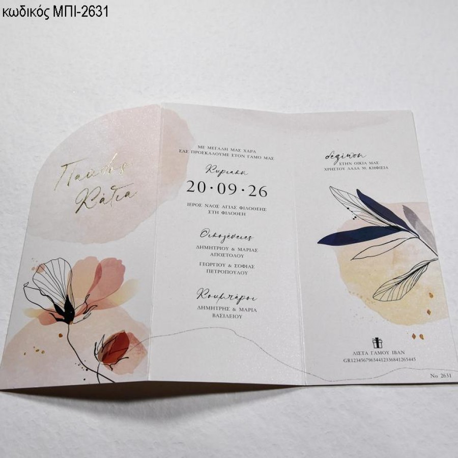 ΠΡΟΣΚΛΗΤΗΡΙΟ ΓΑΜΟΥ ΛΟΥΛΟΥΔΙΑ ΜΠΛΕ ΚΟΚΚΙΝΕΣ ΑΠΟΧΡΩΣΕΙΣ ΤΡΙΠΤΥΧΟ ΜΠΛΕ ΜΠΙ-2631