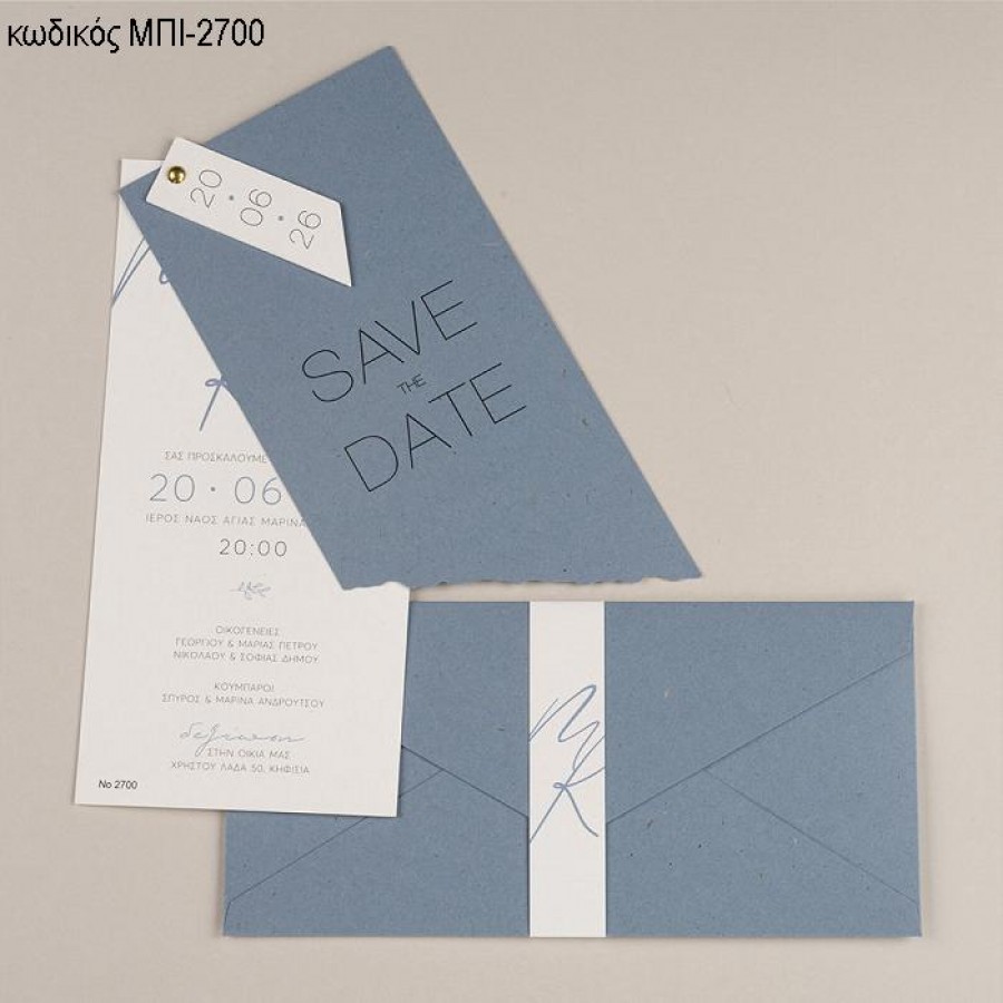ΠΡΟΣΚΛΗΤΗΡΙΟ ΓΑΜΟΥ ΔΙΠΛΟ ΜΕ ΚΑΡΤΕΛΑΚΙ ΗΜΕΡΟΜΗΝΙΑ ΣΕ ΦΑΚΕΛΟ ΜΠΛΕ ΜΠΙ-2700