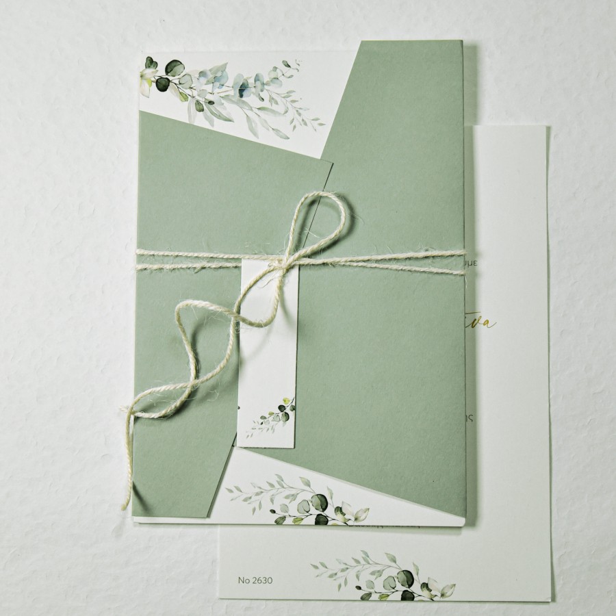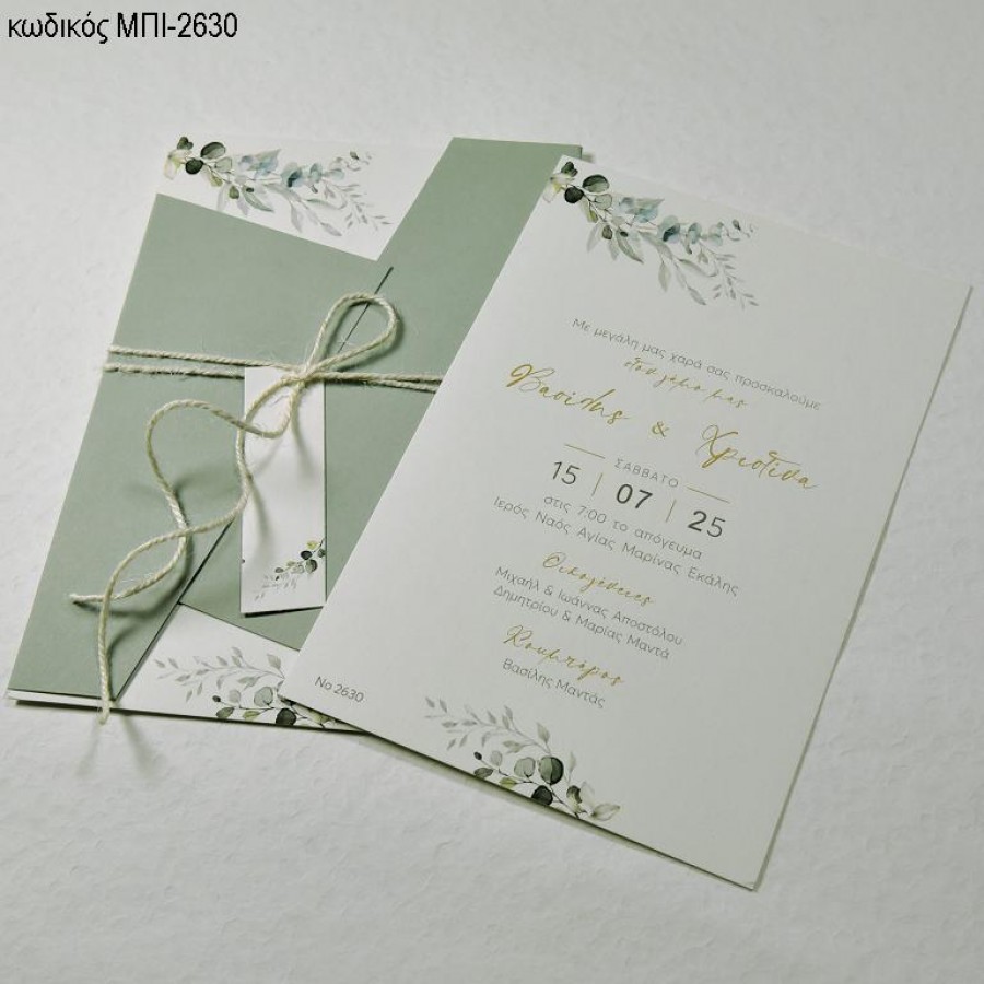 ΠΡΟΣΚΛΗΤΗΡΙΟ ΓΑΜΟΥ ΜΕ ΠΡΑΣΙΝΟ ΣΕ ΦΥΛΛΑ ΣΕ ΦΑΚΕΛΟ ΑΝΙΣΟ ΠΡΑΣΙΝΟ ΜΠΙ-2630