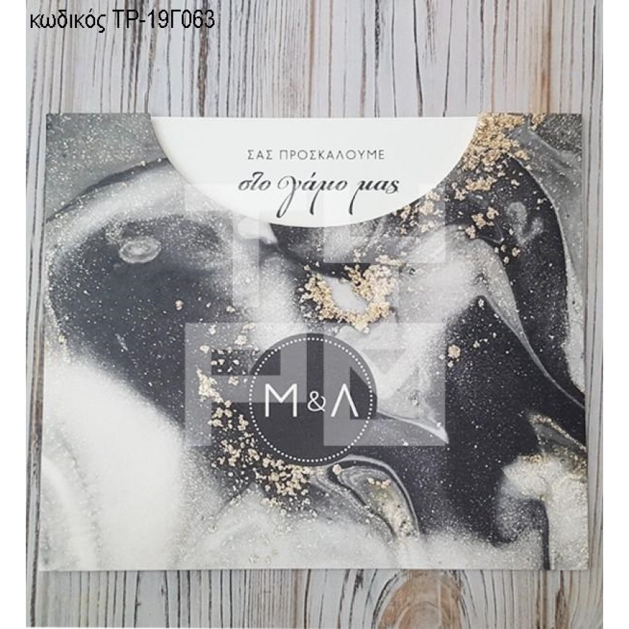 ΠΡΟΣΚΛΗΤΗΡΙΟ ΓΑΜΟΥ ΒΑΜΒΑΚΕΡΟ ΧΑΡΤΙ ΣΕ ΣΥΡΤΑΡΩΤΗ ΘΗΚΗ ΣΧΕΔΙΟ ΜΑΡΜΑΡΟ ΤΡ-19Γ063