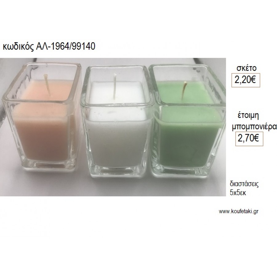 ΚΕΡΙ ΑΡΩΜΑΤΙΚΟ ΣΕ ΤΕΤΡΑΓΩΝΟ ΔΟΧΕΙΟ για μπομπονιέρες γούρι δώρο ΑΛ-1964/99140 2.20€!!!