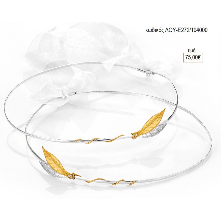 ΣΤΕΦΑΝΑ ΓΑΜΟΥ ΕΠΑΡΓΥΡΑ ΑΣΗΜΙ ΒΕΡΓΑ ΜΕ ΦΥΛΛΑ ΧΡΥΣΟ ΑΣΗΜΙ ΛΟΥ-Ε272/194000 75.00€!!!